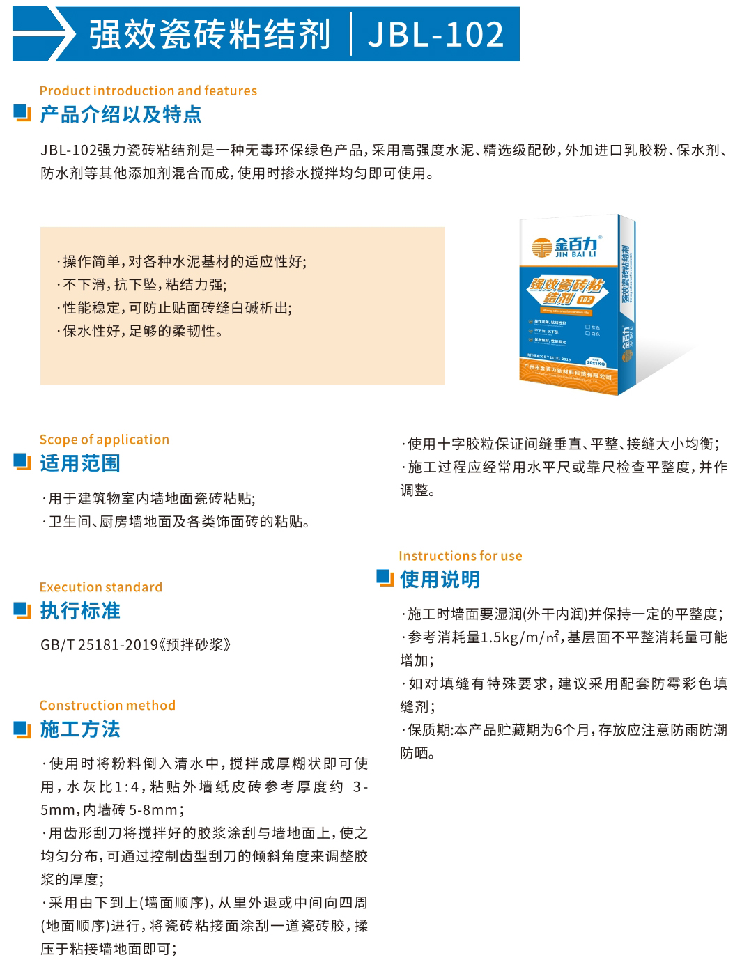 JBL-102强力瓷砖粘结剂