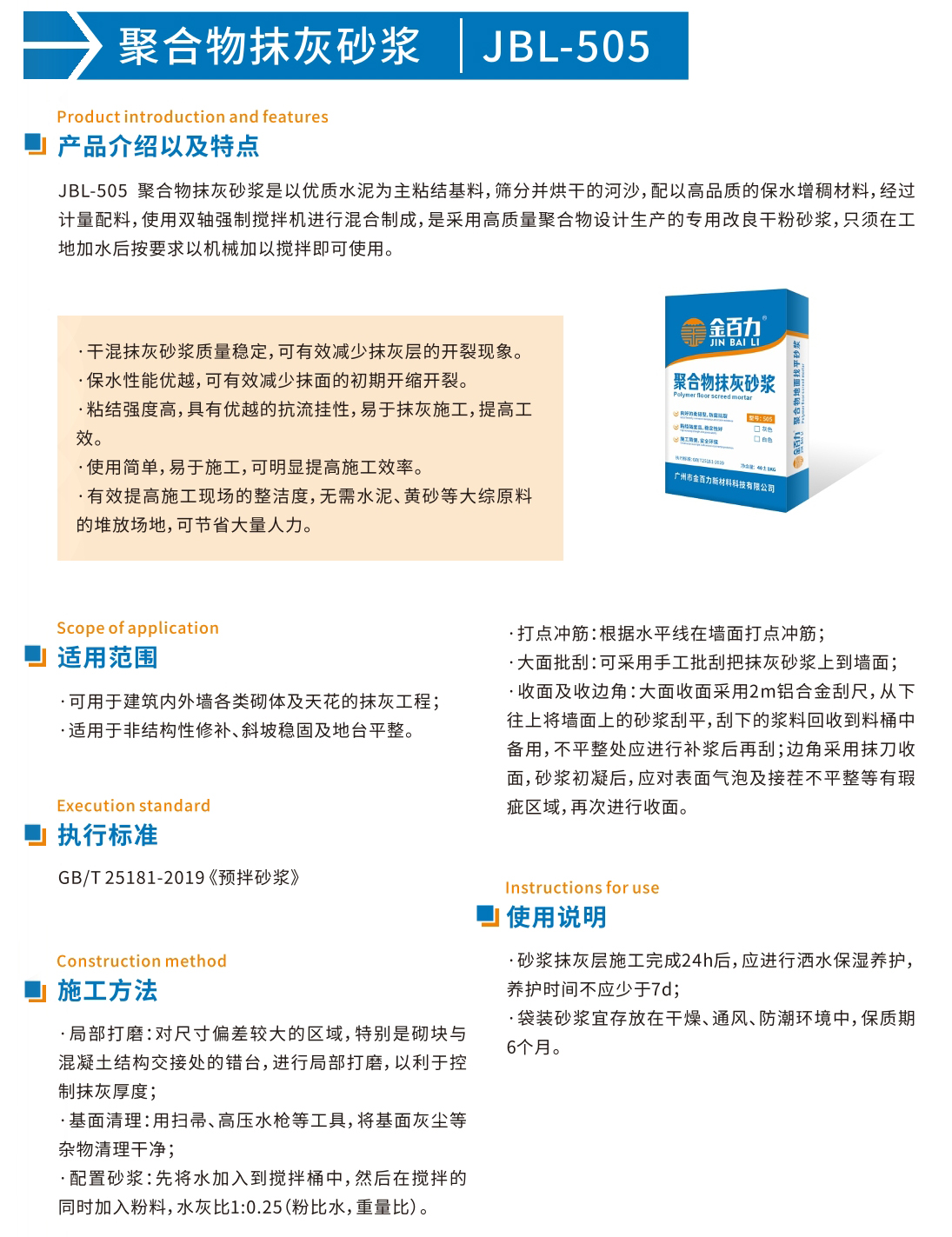 JBL-505聚合物抹灰砂浆