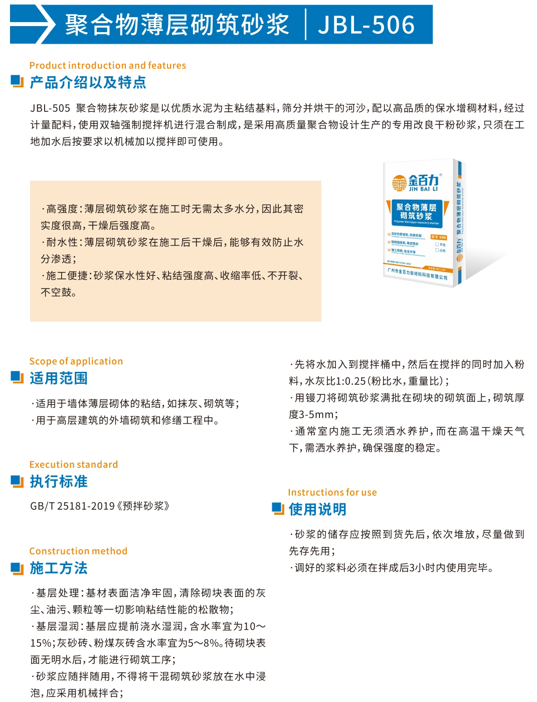 上一个:JBL-505聚合物抹灰砂浆 下一个:JBL-507聚合物薄层抹灰砂浆