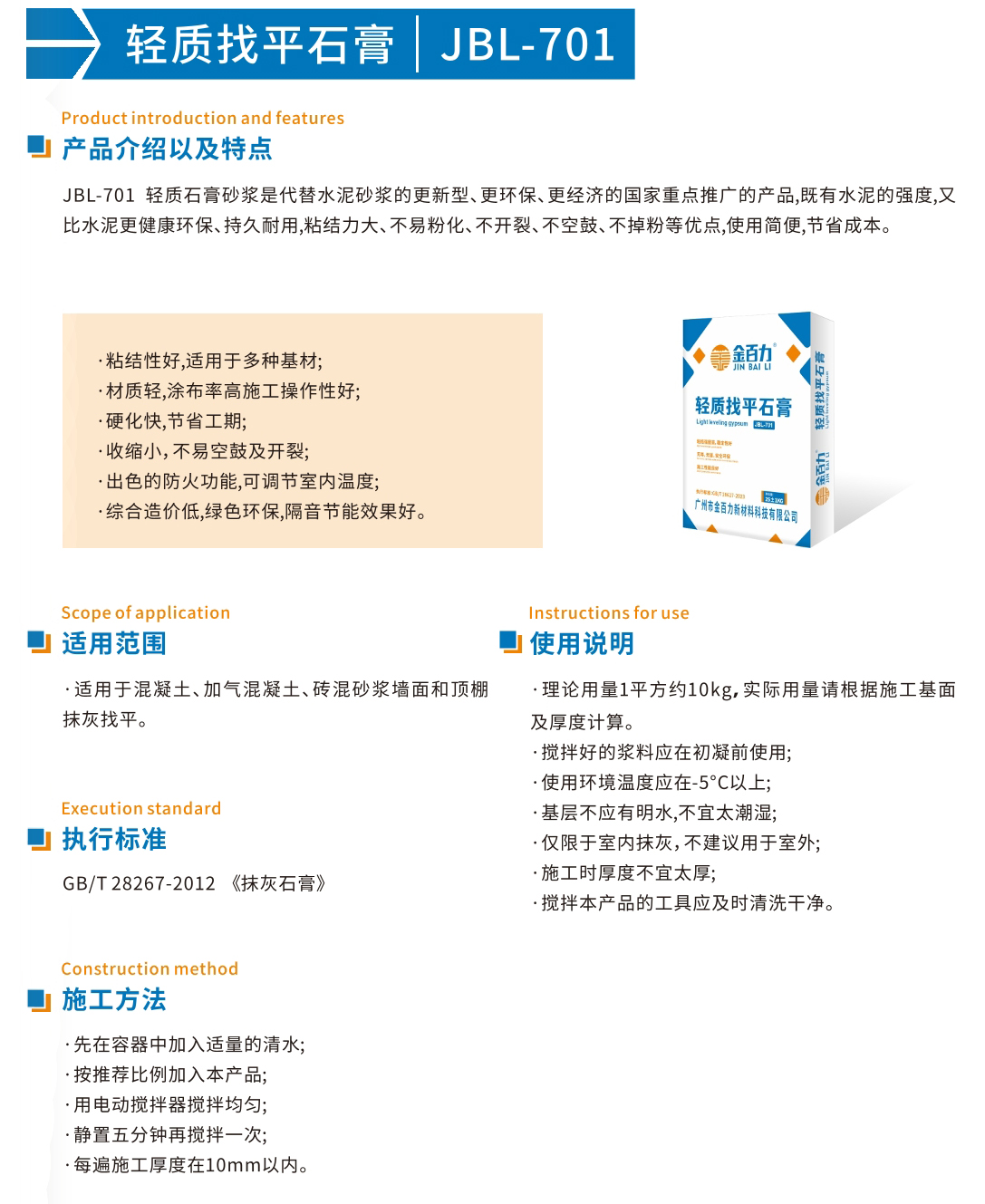 JBL-701轻质找平石膏