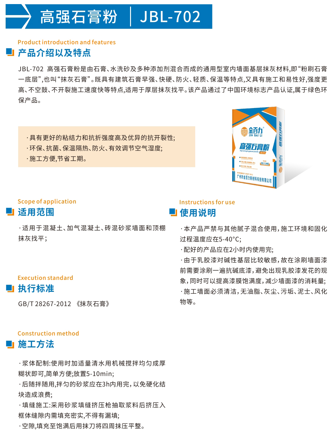JBL-702高强石膏粉